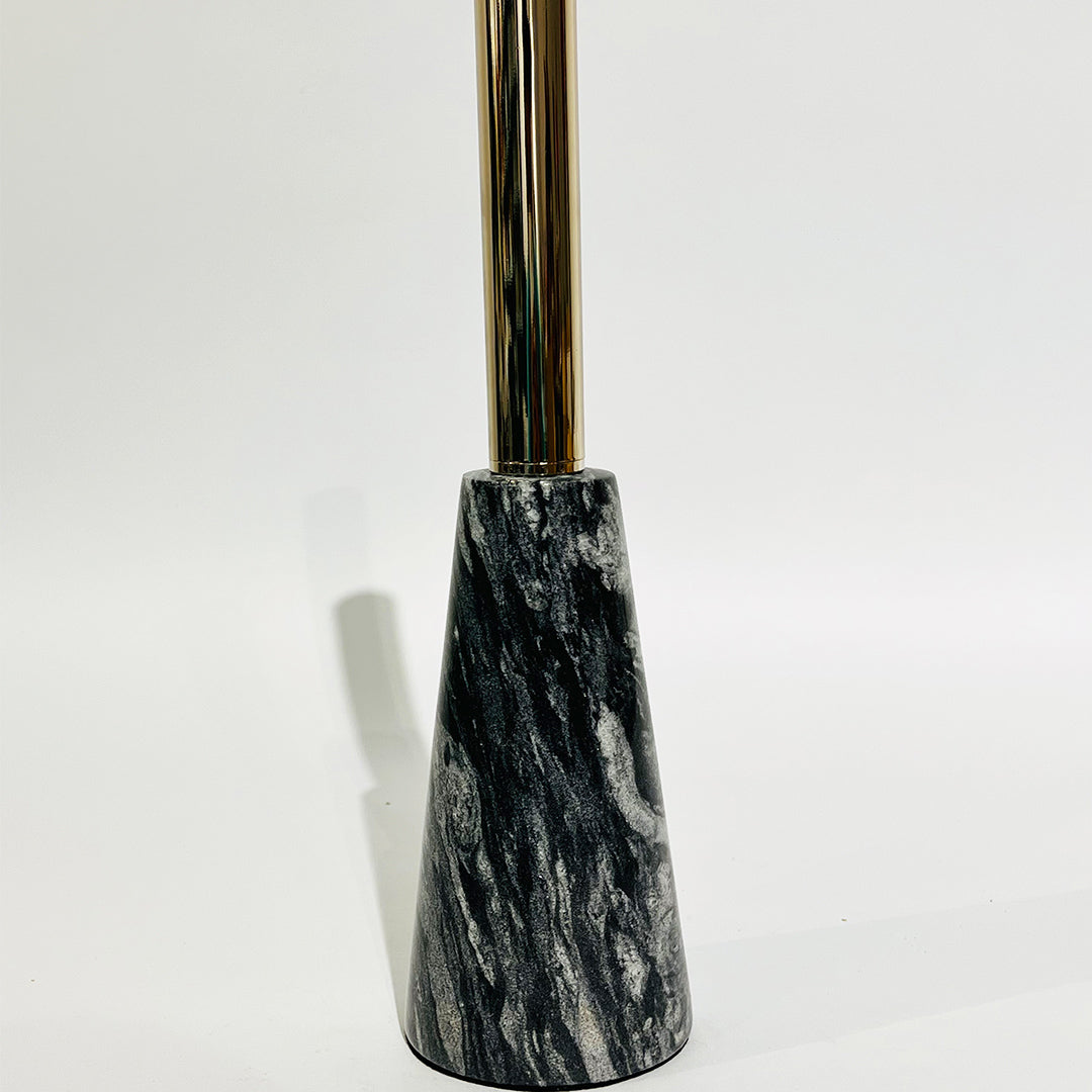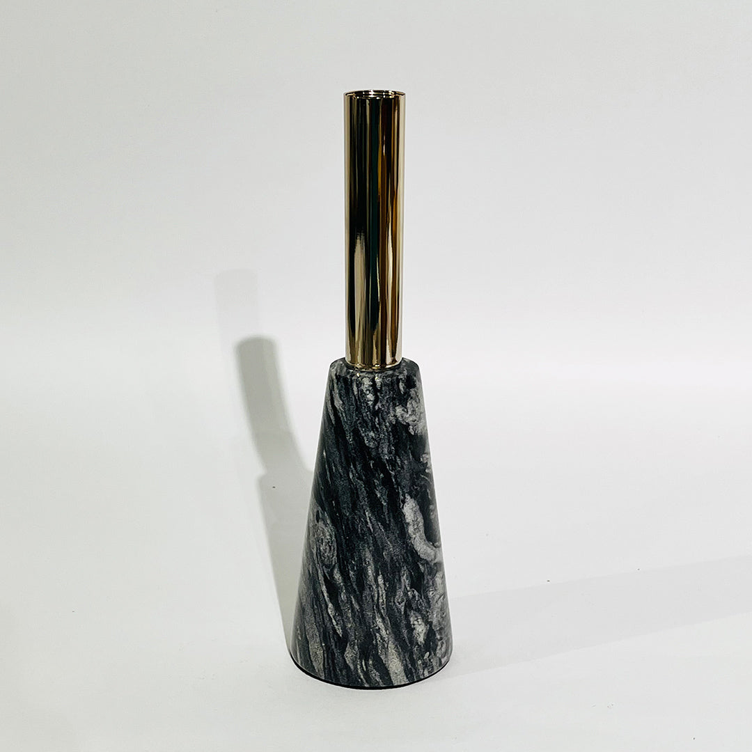 Dale un toque moderno y elegante a tu hogar con este florero decorativo en hierro con base de efecto mármol. Su diseño combina la solidez del metal dorado con la textura sofisticada del mármol en tonos negros y grises, ideal para complementar ambientes contemporáneos.