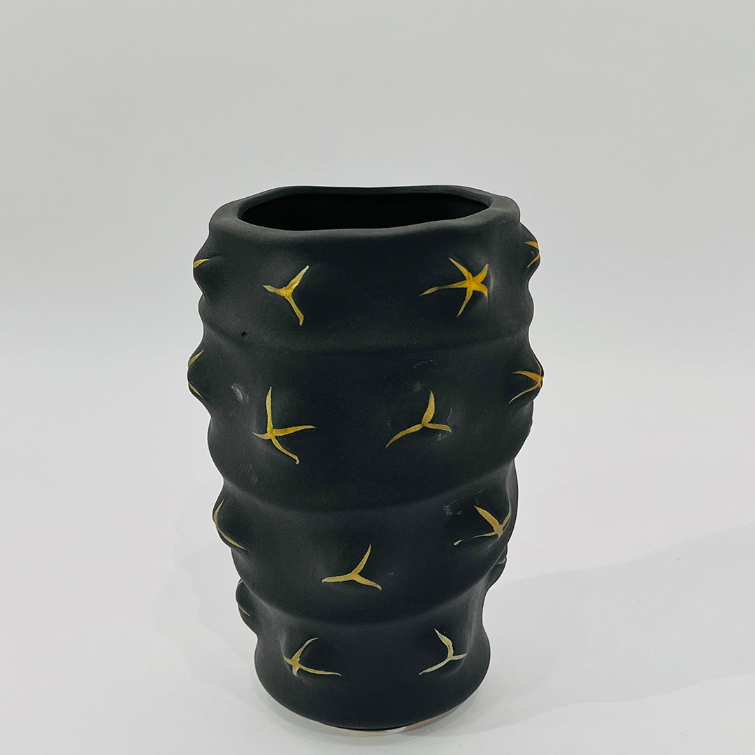 Elegante jarrón de cerámica en color negro, ideal para aportar un toque moderno y sofisticado a cualquier espacio. Su diseño minimalista combina fácilmente con distintos estilos de decoración.